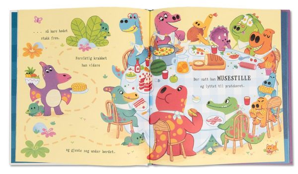 Lille Gjemmesaurus liker å ha det stille og rolig. Hun liker IKKE å ha mange rundt seg. Så når Mammasaurus og Pappasaurus inviterer til et STORT selskap, blir Gjemmesaurus VELDIG sjenert! Vil hun sitte under bordet hele tiden, mon tro? Eller vil en modig dinosaur klare å få henne til å bli med og ha det gøy?